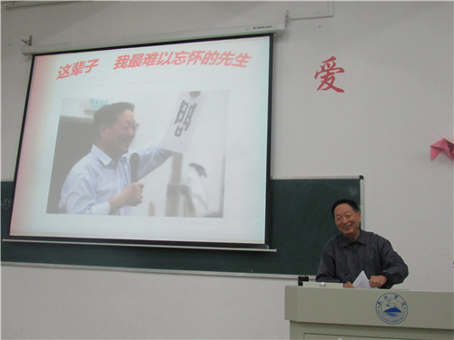 陈忠教授向同学们一一讲述他这辈子最难以忘怀的四位先生:首先是他的大学恩师夏延章,一本《一百次登门拜访》诠释了陈教授对恩师的敬重与崇拜之情。随后又向同学们讲述了他与长征干部周克用、老区赤贫郭英鸠、香港富商曾宪梓和英籍华人万心蕙之间的点点滴滴,陈教授还介绍了自己受这四人启发并专门撰写了一本书,名为《让你活的明白》。课堂上,陈教授与同学们展开了有趣的互动,并向参与互动的同学赠送了书籍,勉励同学们多读书,读好书,提高自身的文学修养。此次讲座在经久不息的掌声中成功结束。