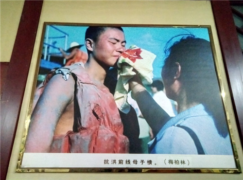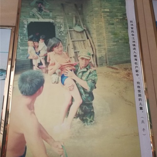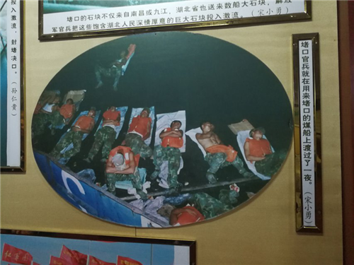 参观过程中,还有一些与抗洪有关的图片,从这些图片中队员们不但感受到洪的凶猛,同时也被抗洪中那些奋不顾身,勇于抗洪的解放军战士的决心所感染。同时也体会到“万众一心、众志成城,不怕困难、顽强拼搏、坚韧不拔、敢于胜利”这抗洪口号的深刻内涵。
