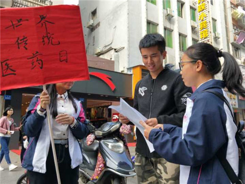 10月22日上午,各班班干带领全班同学在校园内欧风园内集合,要活动组织者简要介绍世界传统医药日的来源、意义及发展历史,并强调了此次活动的注意事项及安全问题后,同学们分批次乘公交到达活动目的地,在各公园内,同学们做起了传播传统中医药文化的小宣传员,有的同学手持传单并积极向路人进行宣传讲解,有的同学在显眼处立起了文化标牌,并用简洁有趣的方式,向人们介绍传统医药的作用和安全用药的重要性。