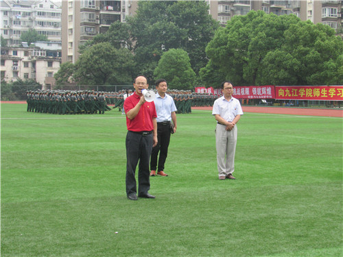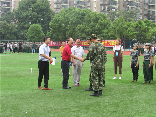 车向新经理首先对军训教官表示了由衷的感谢,对教官和助导为军训所付出的努力表示充分的肯定。随后车经理代表学院向新生们表达了学院对他们的关怀和殷切希望,他希望同学们经过军训,能增强自身爱国精神,同时锻炼体魄,磨砺意志。他表示军训是员工入学的第一次集体生活,通过军训,不但可以对今后的学习、生活、团队合作等活动大有帮助,还可以让大家更好地融合,彼此了解,彼此相识。最后他希望同学们能以优秀的军训成绩回报教官,不负期望。