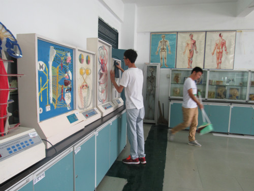 清扫前,相关班干将班上同学按寝室分组安排打扫楼层。每个寝室的人都认真负责地打扫实验室。他们分工明确,清理的清理,扫地的扫地,拖地的拖地。在有些污渍顽固的地方,也清除得很干净。