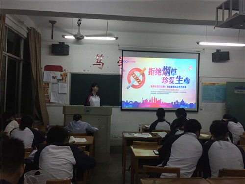 “烟草依赖是一种慢性疾病,烟草危害是世界最严重的公共卫生问题之一。吸烟和二手烟暴露严重危害了人类健康。因此,我们应该‘全民携手,抵制烟草’!”,团支书向大家介绍到。随后,团支书给同学们播放了与吸烟的危害相关的短片与PPT,同学们看完之后感触颇深。
