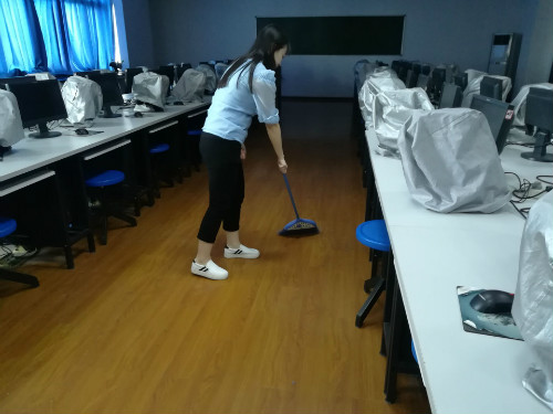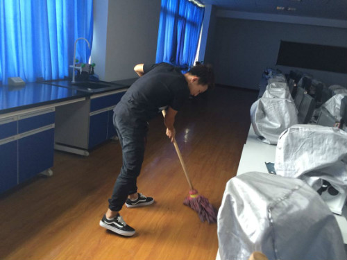 下午3:10,同学们分为四组对华文楼五楼实验室进行打扫。活动过程中,同学们纷纷拿起抹布、扫把等劳动工具进行认真地打扫,不放过每一个角落,不落下任何一抹尘埃。进过同学们辛苦打扫后,实验室变得焕然一新、一尘不染,看到自己的劳动成果,同学们都露出了会心的微笑。