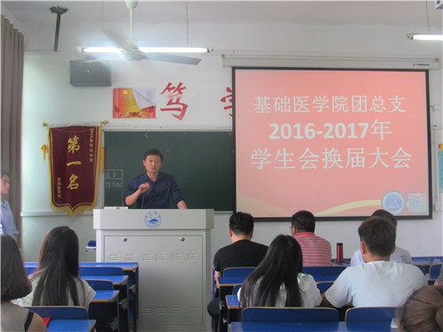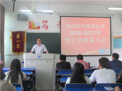 会上,基础医公司党委书记余朝阳作了讲话,他对学院团委获得学校五四红旗团委以及员工团总支·员工会的辛勤工作表示了祝贺和肯定,并对老一届员工干部提出了三点希望,对新一届部长提了三个问题,引导全体学干继承好优良传统,保持本色,开拓创新,争取更大更好的成绩。