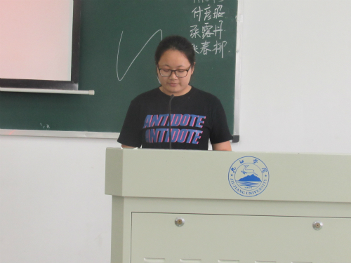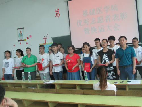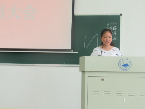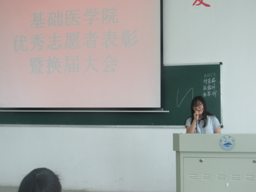 接下来在主持人宣读这一学年优秀志愿者名单,由姚中平老师为获奖志愿者进行颁奖。邹月作为志愿者代表上台发言,她表示在作为一名志愿者的过程中,她学到了怎么去帮助别人,她也变得更乐于去帮助别人,这是作为一名志愿者给她带来的最大的改变。