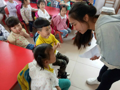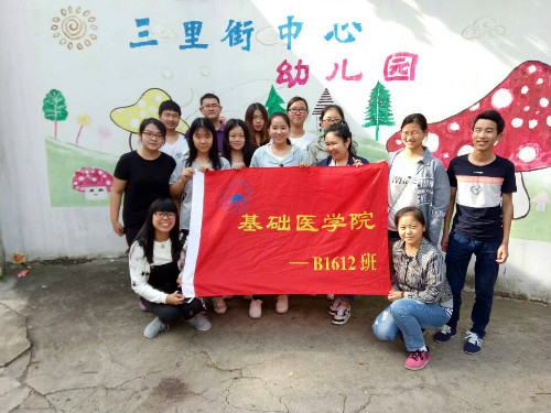 活动伊始,同学们在负责人的带领下来到三里街幼儿园,在老师的带领下同学们分成小组进入不同的教室给孩子们讲解营养知识,同学们利用向孩子们提问给予小贴纸的奖励的方式激起了孩子们的活动热情,使活动开展得很顺利,长达20分钟的小课堂结束,孩子们开心地和同学们合影留念并挥手说再见。
