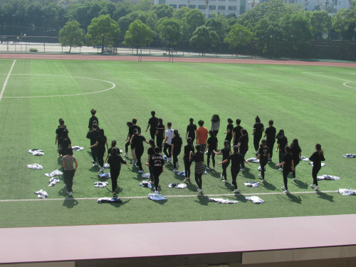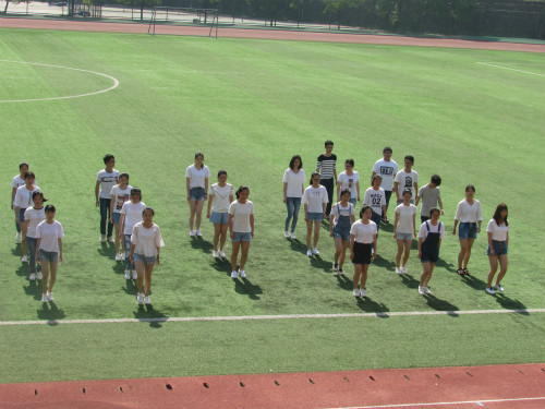 随着音乐的响起,比赛拉开了序幕。进入决赛的9个班级相继上场。虽然天气十分炎热,但同学们的脸上都洋溢着自信、青春、灿烂的笑容,他们用他们的自信和活力展现青春的朝气。