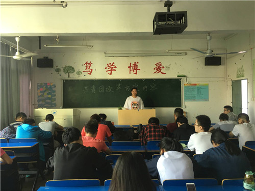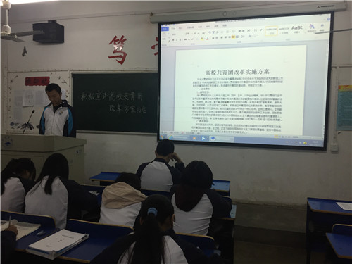 会上,团支书指出:共青团中央、教育部制定的《高校共青团改革方案》是为深入贯彻落实习近平总书记系列重要讲话、《中共中央关于加强和改进党的群团工作的意见》和中央党的群团工作会议精神,随后对《高校共青团改革方案》进行了解读。团员们各抒己见,共同学习讨论《高校共青团改革方案》中所提出的思想原则和改革措施,讨论氛围十分浓厚。团员们均表示将按照《高校共青团改革方案》的要求,严格要求自己,扎实推进,落实举措,主动向身边同学展示忠诚于党的良好形象。
