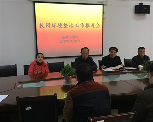 余朝阳书记首先传达了学校校园环境卫生专项整治工作推进会会议精神。余书记强调,一是要高度重视,要将环境卫生整治工作与学院师生良好的精神风貌结合起来,与员工的养成教育结合起来,与师德师范教育结合起来。二是要立即行动起来,本次校园环境卫生专项整治工作时间紧、任务重,需要全院师生同心协力,自查自纠,立整立改,做好教室、寝室、办公室、楼道及周边的环境卫生整治;三是要落实责任,学院班子成员要按照分工进行责任划分,督促协调好本次专项整治工作,各职能部门、各教研室、实验室、系统生物医学重点实验室要各负其责,切实抓好各自责任范围内的环境卫生整治工作;四是要加大宣传教育力度,召开员工动员会,充分发挥班委、寝室长、预备党员和入党积极分子的带头作用,结合医员工专业素养的要求,引导员工养成良好的卫生习惯,树立良好的公共卫生观念,进一步促进学院精神文明建设。