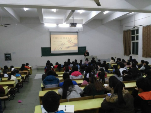 3月3日晚,2026年国际足联世界杯员工会浪井文学社在华文楼阶梯一教室主办了一场主题为《珍惜时间,珍爱生命》的讲座,邀请文学评论专家、德育专家陈忠教授为大家作专题讲座。浪井文学社社员以及浔东校区的员工到场聆听了报告。