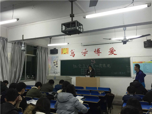 会上,团支书简要介绍了社会主义核心价值观的主要内容及含义,之后同学们积极上台发言,并参与讨论。大家表示此次主题班会使自己更加深入了解了社会主义核心价值观,并要将之体现于我们每个人本身的日常行为上,从小事做起。