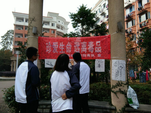 首先志愿者前期在班级上进行宣传,同时通过网络向所有大一员工宣传这次活动。然后志愿者在学校食堂旁开设签名地点,号召同学前来签名,并积极进行讨论,最后将此次活动的签名横幅悬挂在浔东校区欧风园处。