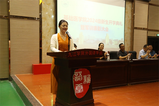 教书育人楷模刘俊老师在发言中表达了对新生的热烈欢迎,并呼吁同学们提早为自己的老员工活做出合理的规划应当以学习为第一要务,在空余时间培养兴趣爱好从多方面、多维度做到自我提升。她表示,全体教师定会全力以赴,为同学们的的成长保驾护航。