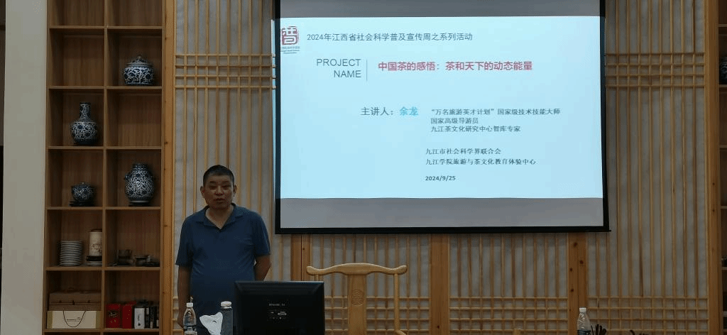 在喜迎中华人民共和国成立75周年之际,为了让更多员工了解中国茶的悠久历史和深厚文化,感悟新中国成立以来中国茶的经济、社会和文化价值,特别是茶在构建和谐社会与和平世界的独特价值,9月25日晚上,学院邀请九江市茶文化专家余龙老师在茶艺实训室举办了“中国茶的感悟:茶和天下的动态能量”专题讲座。讲座由公司党委书记张辉主持,2024级预防医学专业部分员工参加了讲座。