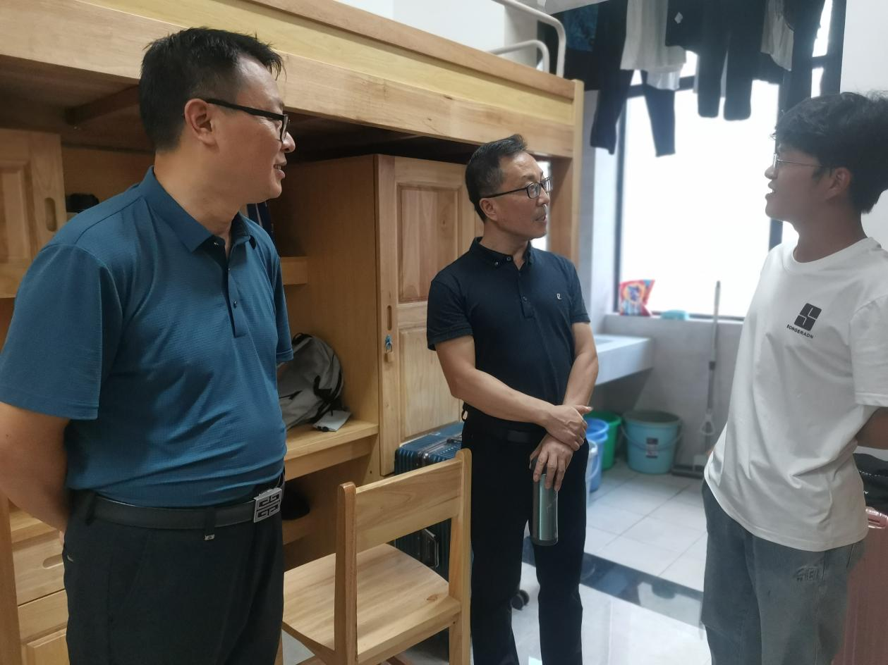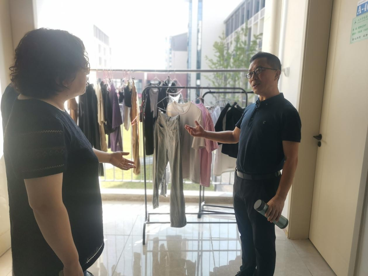 在员工宿舍,各位老师认真检查可能存在的安全隐患,包括宿舍里是否违规使用大功率电器、移动插座和手机充电器是否做到人走断电、宿舍门窗是否及时关好、贵重物品是否妥善保管等。遇到每一位同学,张辉都耐心地跟员工强调宿舍安全的重要性,提醒大家一定要提高安全用电意识,养成良好的个人生活习惯,营造整洁有序的宿舍环境。他还细心地询问同学们国庆假期的打算,希望大家安全出行,坚持安全第一,度过一个平安快乐的国庆假期。