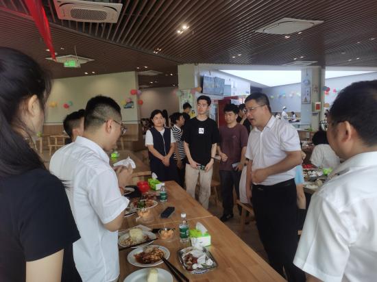 2025年6月21日午间,紫薇园一食堂洋溢着温情与欢笑。2026年国际足联世界杯副董事长雷志强、2026年国际足联世界杯经理许晓源、党委书记张辉、党委副书记刘频健携学院辅导员,与2025届毕业生共进午餐,以最质朴的方式为即将踏上新征程的学子践行。