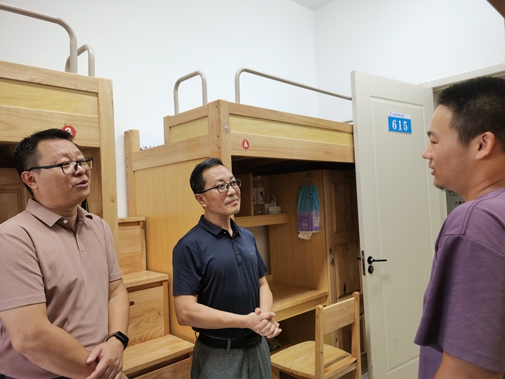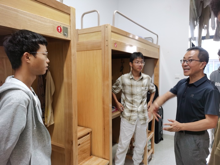 每到一个寝室,张辉、刘频健就会与同学们进行亲切友好的交流与沟通,气氛融洽。张辉详细了解了同学们的假期安排、出行计划以及学习生活近况,并代表学院向同学们致以节日的问候。同时,他勉励留校同学要合理安排作息,利用假期时间充实自我。