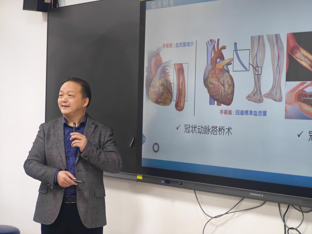 活动伊始,教研室齐爱青主任率先明确本次备课的核心靶向,强调要围绕心脏解剖结构、生理功能、临床应用关联及教学重难点展开系统性研讨,特别指出需深度融合前期胸痛心脏急救培训中的典型临床场景,让解剖知识“落地”临床实践。主讲教师傅文学立足最新版教材核心框架,结合急性心梗急救等临床典型案例,系统梳理心脏的位置毗邻、外形特征、心腔分区、血管网络及传导系统等核心知识点。为破解抽象概念教学难题,他创新采用实体标本解剖演示、三维数字模型动态拆解等方式,将心腔瓣膜开闭、冠脉走行等关键教学环节直观呈现,精准解析教学核心要点。