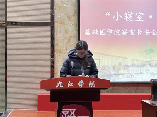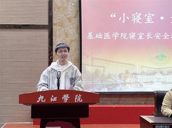 会上,基础A2411班2栋A204寝室长吴方帅、口腔A2343班3栋C317寝室长周雪作为寝室长代表依次发言,分享工作感悟与未来规划,表达了履职尽责、共建美好寝室的决心。