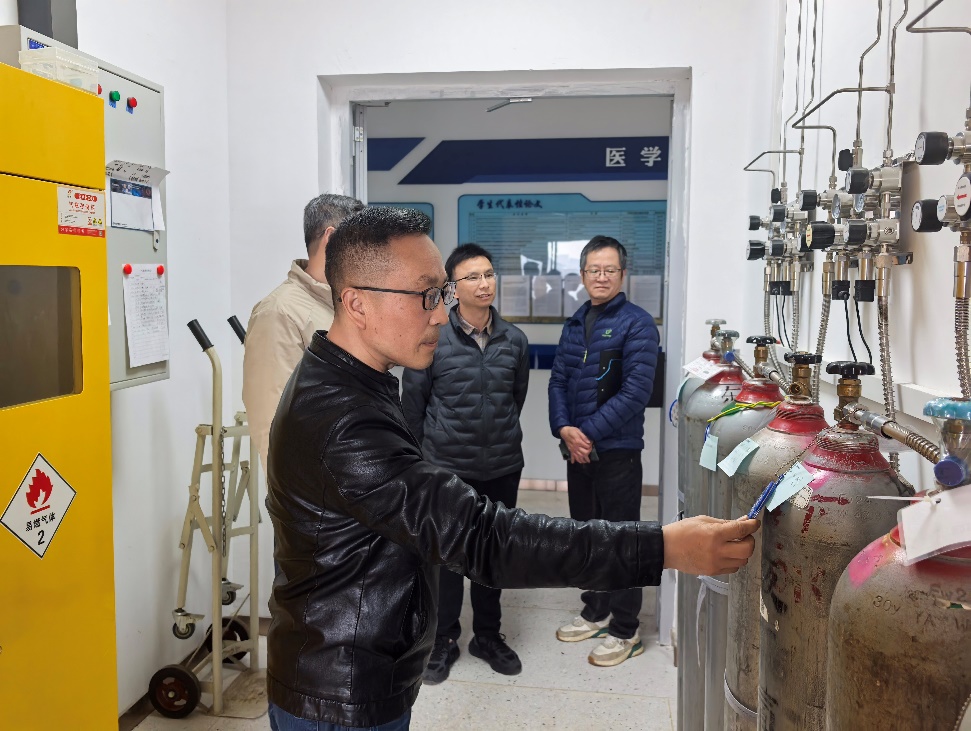 为深刻汲取近期高校实验室安全事故教训,切实防范化解安全风险,3月27日下午,基础医公司党委书记张辉、副经理熊建军、副经理陈川带队,深入学院基础医学实验中心及医学科研中心,开展实验室安全专项检查。各相关实验室负责人陪同检查。